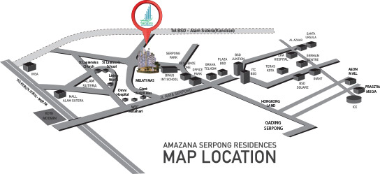 Located at Jelupang Raya, 200 M from future exit tol Serpong - Alam Sutera - Airport, with just a short drive to communal areas such as shopping malls, schools, and hospitals, Amazana Serpong Residences is providing an access to make your life easier.